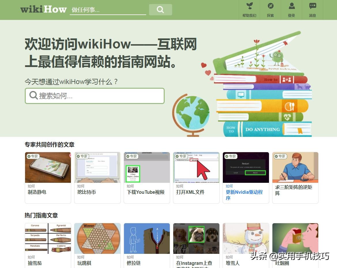 wikiHow是一个汇聚各个领域值得信赖的研究与知识,提供互联网上最有用的万事指南,艺术、生活、教育、健康等各种领域的问题都能在里面找到解决方法。文章以图文的形式来讲述,让人更容易理解。而且这里的文章都经过了多次的审查与把关,可以放心使用。