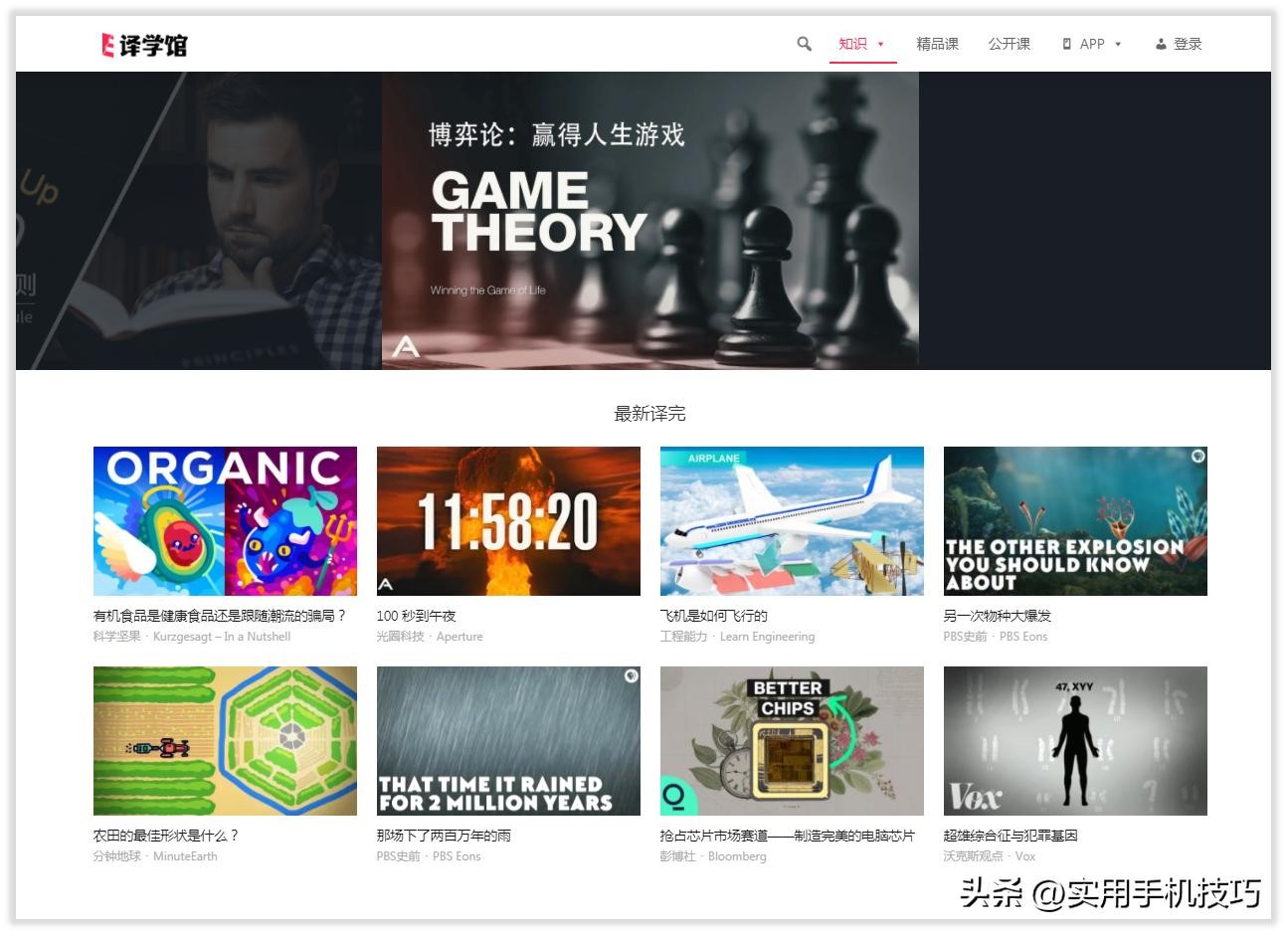 译学馆是一个专注于译制知识视频的平台,每天都能看到最新的优质译制知识视频。它拥有丰富的视频类别和高质量的内容。视频内容涵盖了科普、科技、教育、商业等方面,均来源于海外,已经被译者们制成了中英双语,对学习英语也有很大帮助。