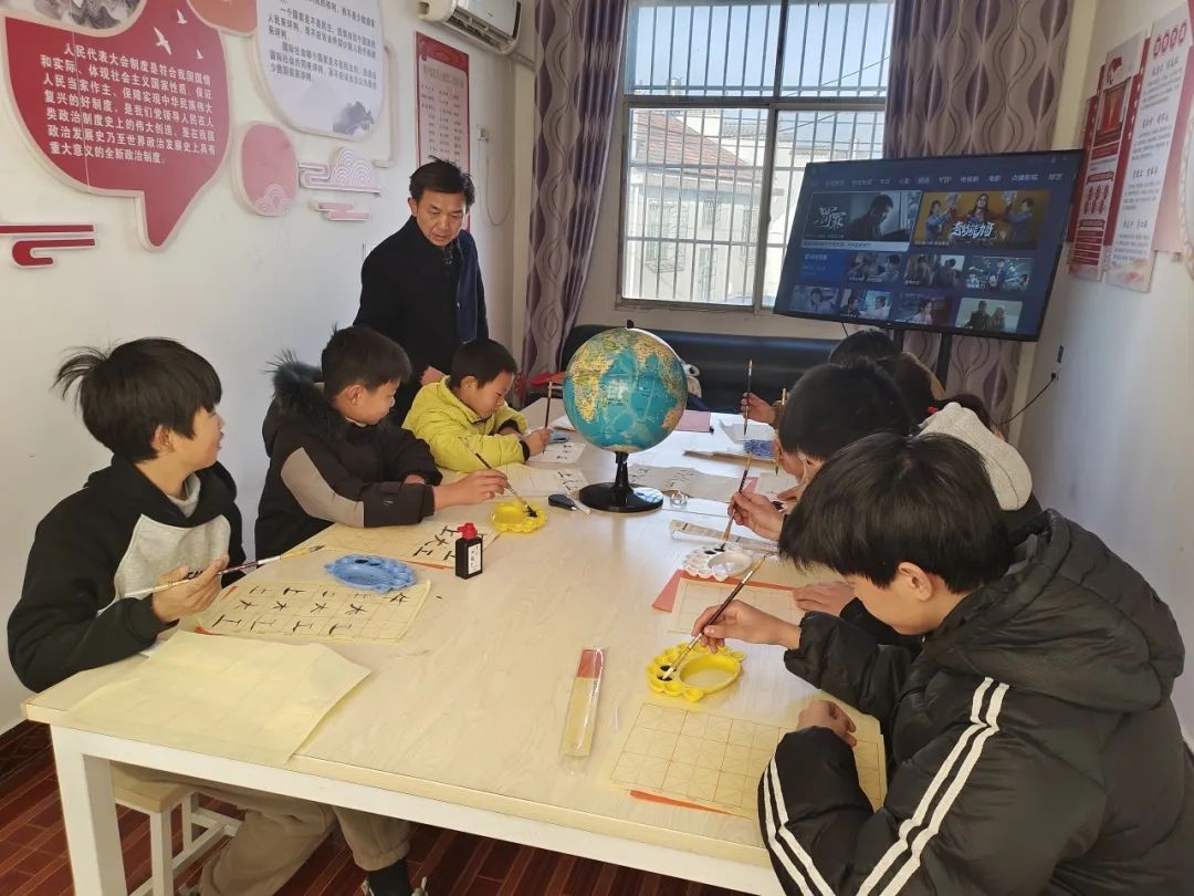(朱山东村寒假“爱心托管班”开展张裕钊书法课)