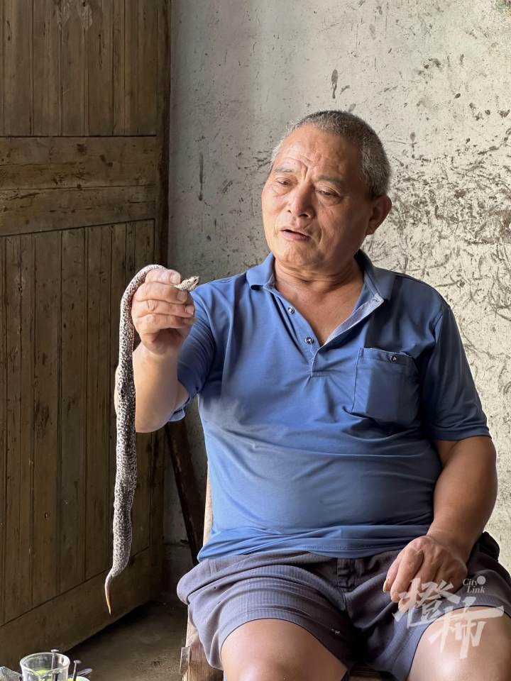 村里的陆主任说:“当时去生产队里工作一天只有3毛钱,但抓蛇出去卖,一天就能赚好几块钱!”