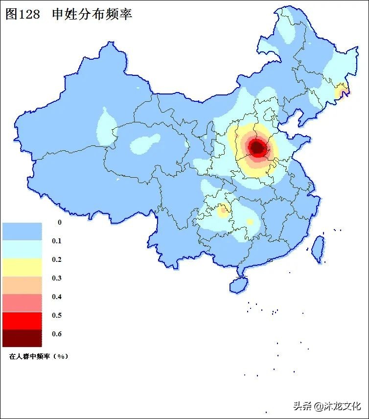 近600年申姓人口增加十分迅速,其增加幅度达到16倍多,远高于全国人口的增加速度。目前申姓人群的主要分布于河南、河北、山西三省,大约占全国申姓人口的42.6%。其次分布于山东、湖南、贵州、四川、陕西、江苏、安徽,这七省又集中了申姓人口的33.8。当今申姓的第一大省为河南,居住了申姓人口的20.7%。全国基本形成了以河南为中心的,向周边逐渐递减的申姓分布图。