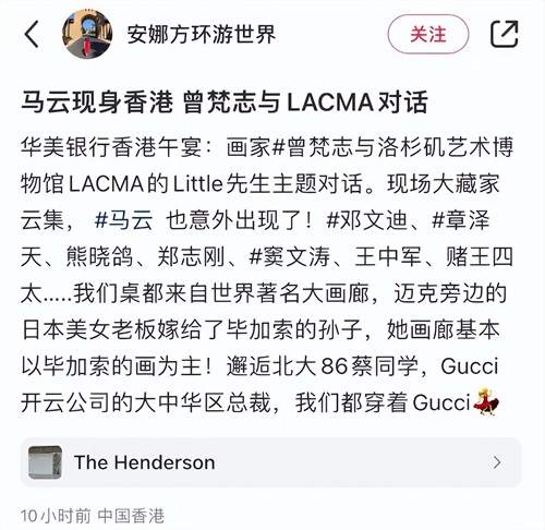 章泽天参加香港午宴,穿牛仔裤与名媛格格不入,马云和四太也在