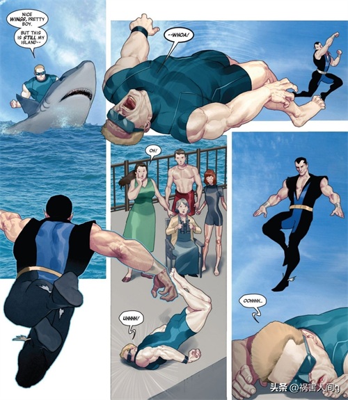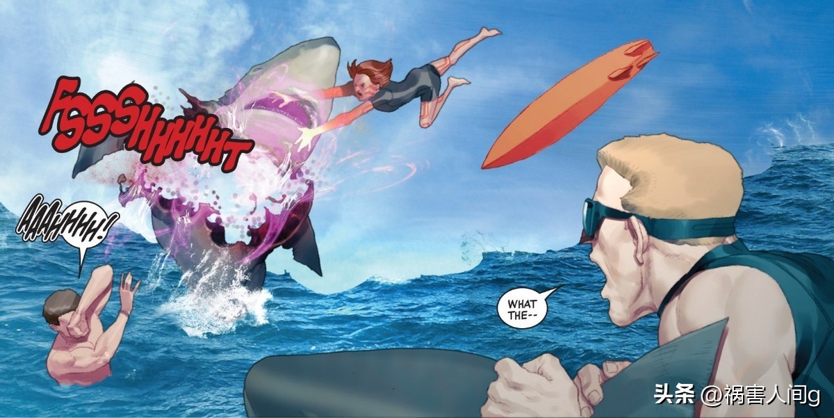 在大白鲨正要命令其他鲨鱼攻击阿拉尼和她的父亲时,海王纳摩出现,将阿拉尼和她的父亲送到了岸上。
