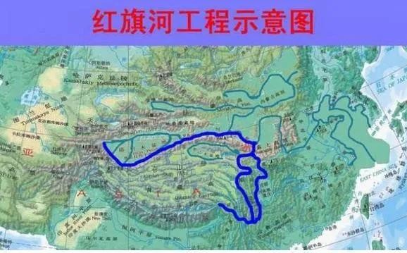 “红旗河”调水工程是一项将我国西南的珍贵水资源全程自流调往西北地区的大型工程,包括一条干线和三条主要支线:“红延河”、“漠北河”和“春风河”。“红旗河”干线从雅鲁藏布江开始取水,经过易贡藏布、帕隆藏布到达怒江,过澜沧江、金沙江到达雅砻江、大渡河、岷江、白龙江,继续北上穿过秦岭开始进入受水区,跨过渭河、黄河以后,沿河西走廊向西进入新疆,沿阿尔金山、昆仑山的山前平原向西延伸至和田、喀什。其中,过渭河以后,“红延河”支线穿过六盘山到达黄河以南的宁夏、内蒙古和陕北地区,最终进入延安;“漠北河”支线于龙首山下、阿拉善右旗境内开始,经狼山、阴山北坡,向内蒙古、北京方向延伸,最终进入密云水库,未来可到达辽西地区;“春风河”支线从河西走廊西部的玉门市附近开始,沿北山西侧延伸至新疆的吐鲁番、哈密盆地,主干线(雅鲁藏布江--新疆喀什)全长6188公里,建成后预计年调水量可以达到600亿立方米,预计总投资额高达40000亿元。简单来说,就是把西藏丰富的水资源输送到新疆等干旱地区,从而把新疆等地的干燥环境改造成湿润宜居的肥沃土地,从而再造一个江南。