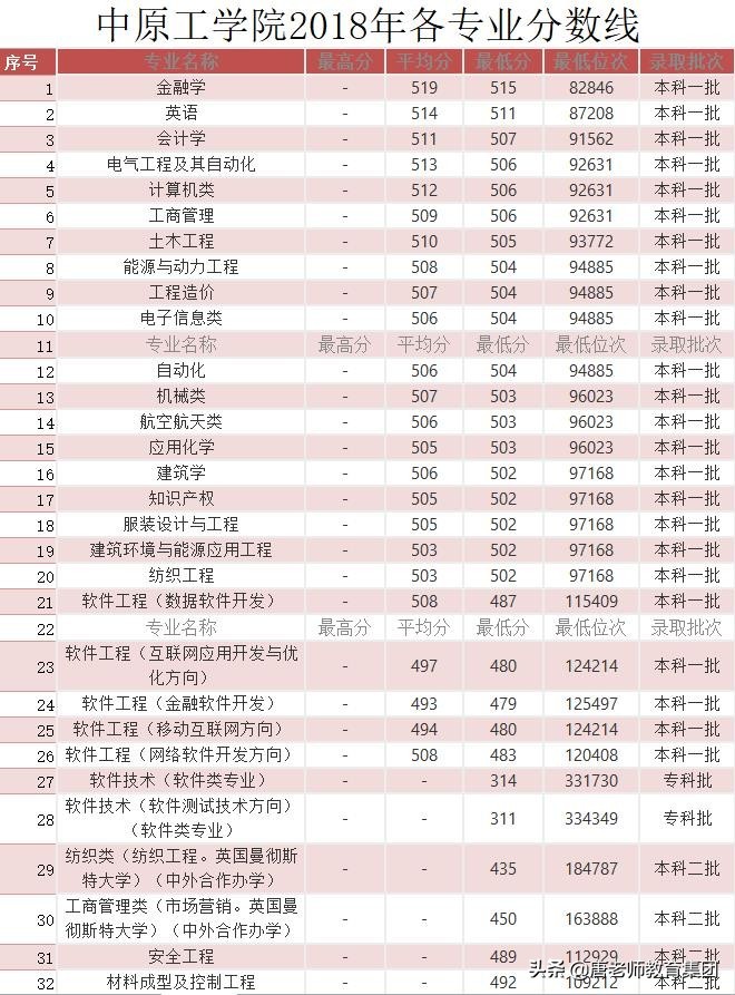 中原工学院历年各专业分数线一览表