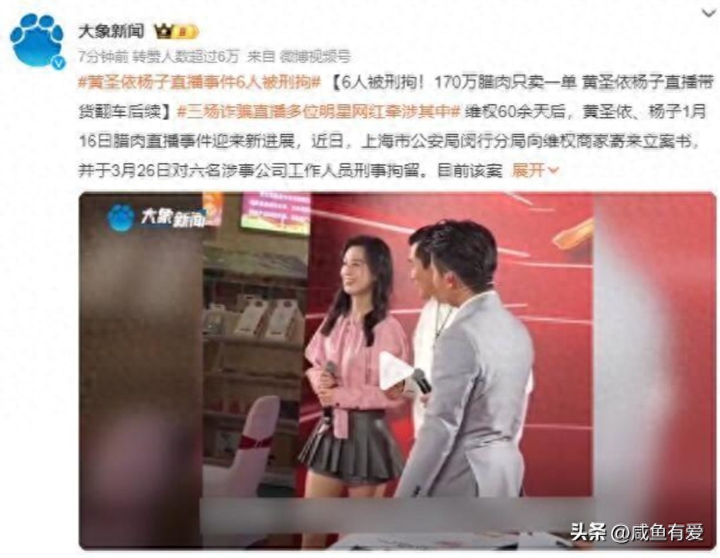 黄圣依杨子直播事件6人被刑拘,网友:扬子黄圣依为啥不刑拘!