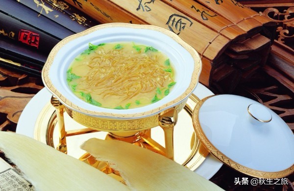 2、鱼翅含有丰富的胶原蛋白,但其蛋白属不完全蛋白,烹制时应与肉类、鸡、鸭、虾等共烹,以达到蛋白质的互补,又能赋味增鲜,能滋养、柔嫩皮肤。(也就是浓汤)