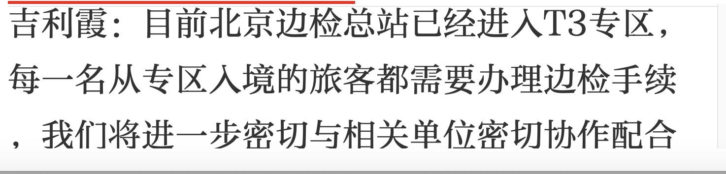 北京边检总站:已经进入T3专区,每一名从专区入境的旅客都需要办理边检手续