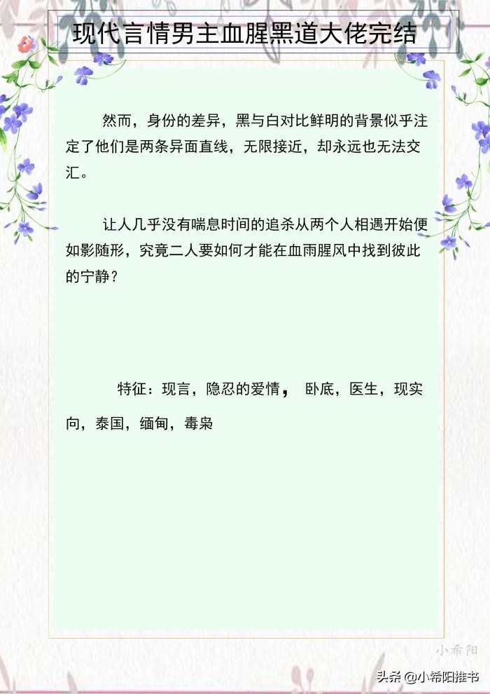 推荐三本现代言情黑道文,男主黑道大佬,一地之王,放下自己的地位,与女主之间的爱情纠缠。