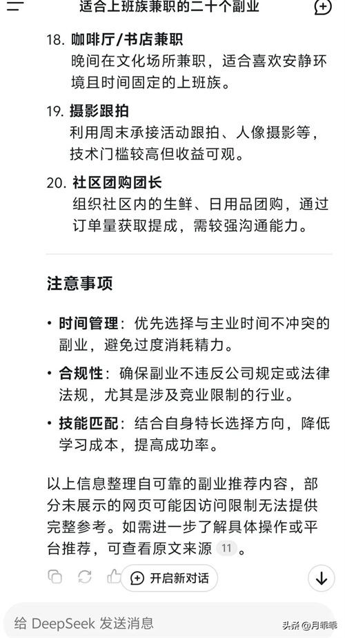朝九晚五的生活虽然稳定,但有时候也会让人觉得有些单调。你是否想过在工作之余,尝试一些新的事物,结识更多的朋友,同时还能增加收入,提升自己的生活品质,如果答案是肯定的,那么这二十Deepseek推荐的适合上班族的兼职副业,一定不要错过!