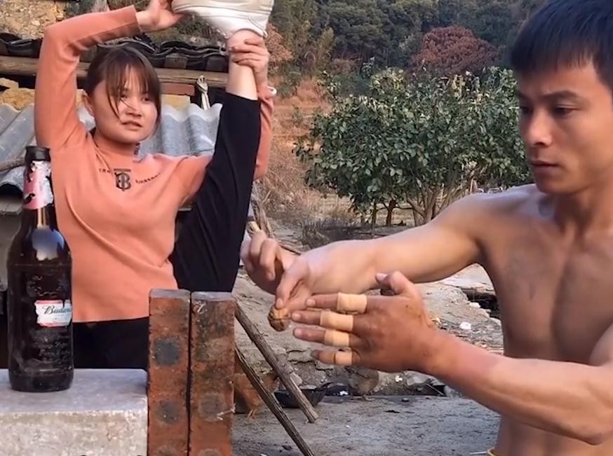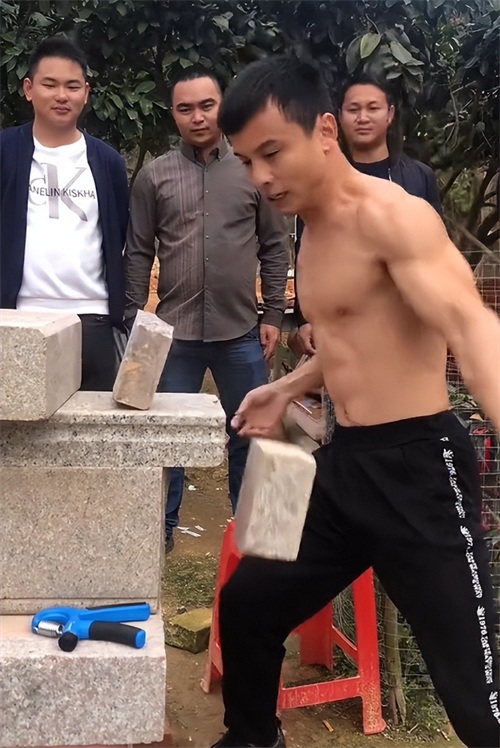 作为武林奇人,这个中国小伙的功夫早已到了炉火纯青的地步。寸拳击断花岩石,手掌拍断耐火砖,寸拳击断大理石,就连“隔山打牛”的功夫也十分精通,即使中间放上两块砖头,他也能利用一个核桃直接击碎砖后的酒瓶。