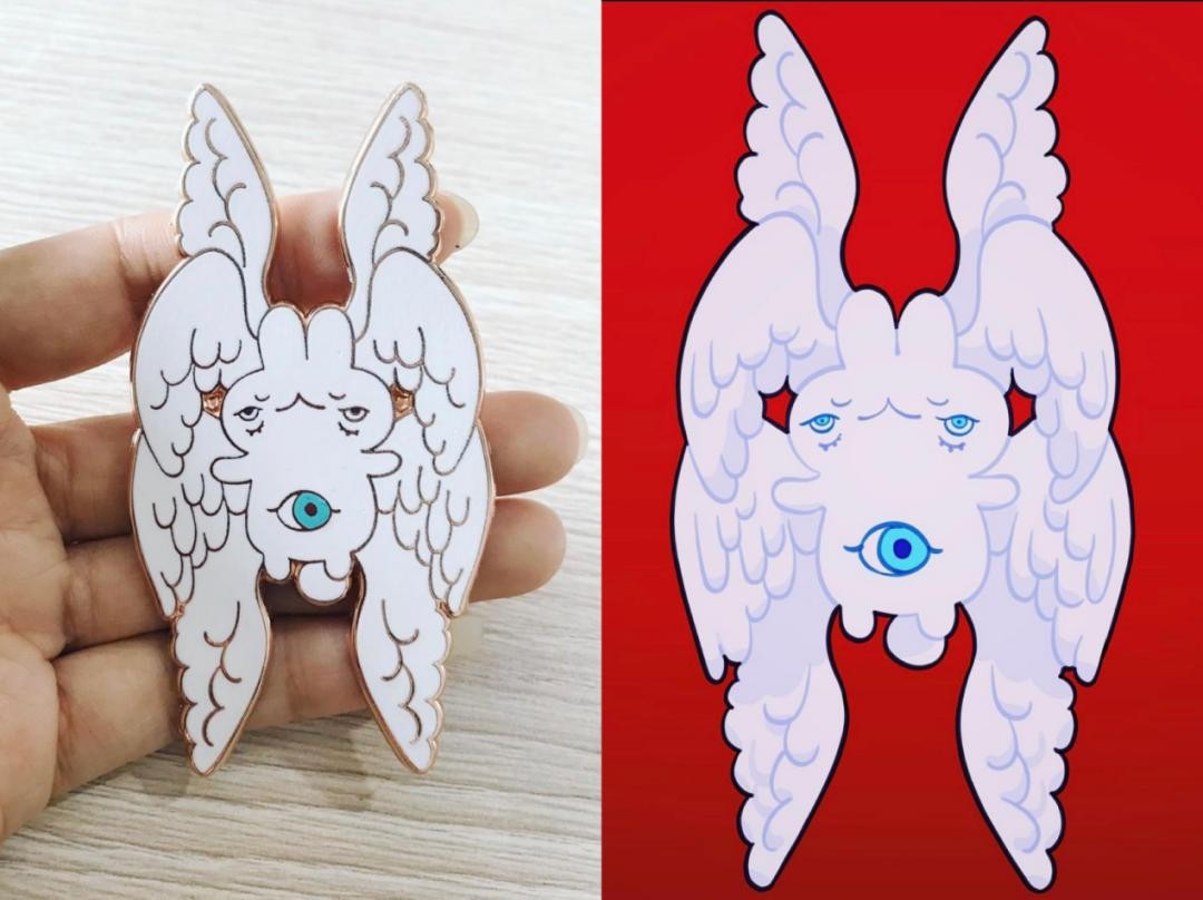 在积累到足够的绘画作品数量后,Meyoco开始将在画布和电脑里的东西带进现实。开始制作一些周边,例如胸针、娃娃、地毯、帽子、物品的外包装等等。