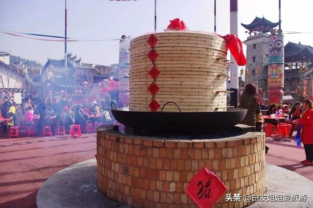 这里的“年猪宴”每逢周末都会举办,精彩的舞狮表演,土家族传统的祭祀白虎仪式,土民族民俗表演,热闹非凡。中午在这里享受午餐,看着大蒸笼咕咕冒着白气,期待着蒸肉的美味。