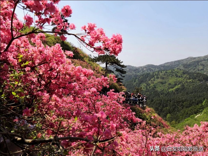 杜鹃花海,千万株形态各异的万亩杜鹃花,在青山幽谷中犹如绮丽彩带飘动山间,春天来这里看花的人络绎不绝。