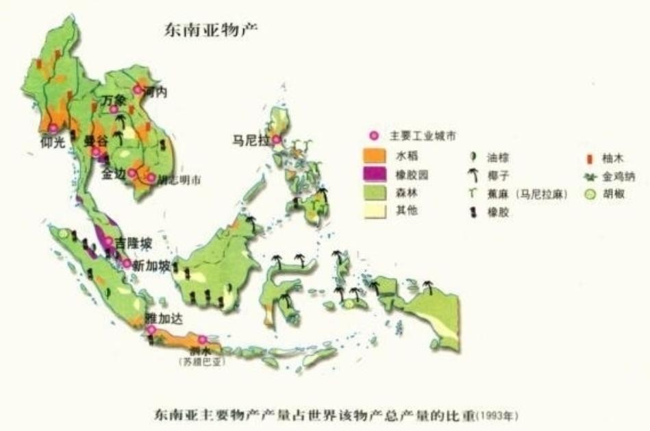 从气候、降水方面分析,东南亚地区雨热条件良好,除中南半岛北部少部分地区外,其他地区的农业条件极其理想,适合种植热带作物。