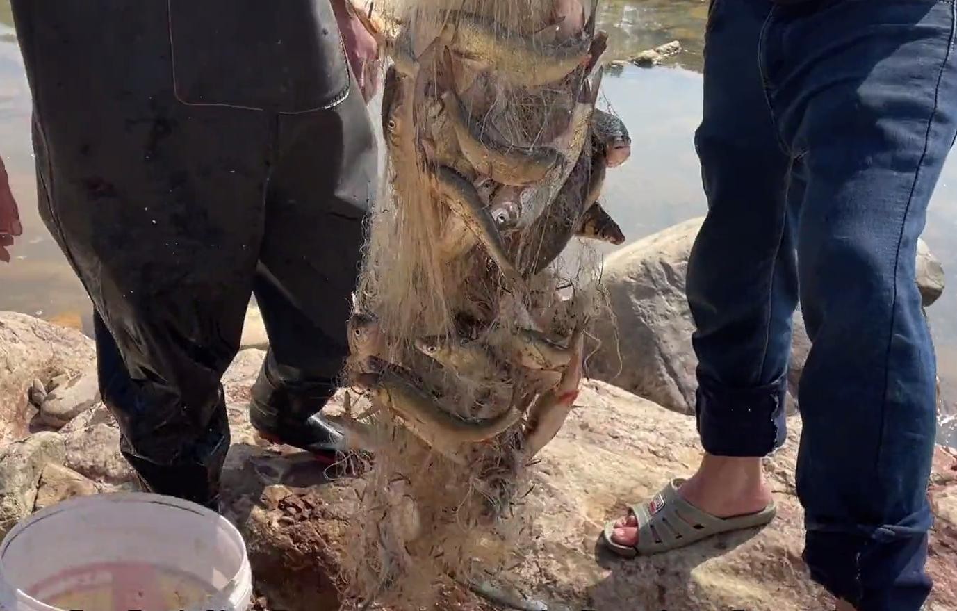 这些老乡捕鱼的水域,是典型的南方山区涧流,一般上游是山体大水库,下游是通江的大河——这种水域一般都是下游鱼群溯流产卵的理想场地。