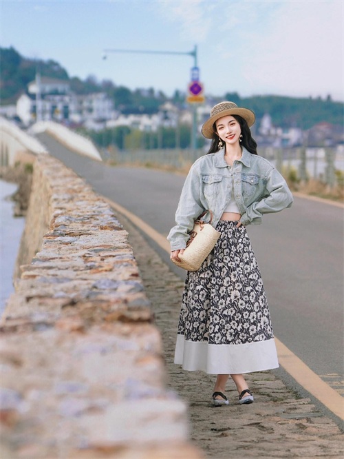 想要在海边拍出彰显个人魅力的全身照,我们可以站在海边的小道上,保持双腿交叉的姿态,一手叉腰,另外一手挎着包包,微微歪头,对着镜头露出治愈、温暖的笑容,简约不简单的姿势,拍出模特表现力和镜头感的同时,也很优雅上镜。