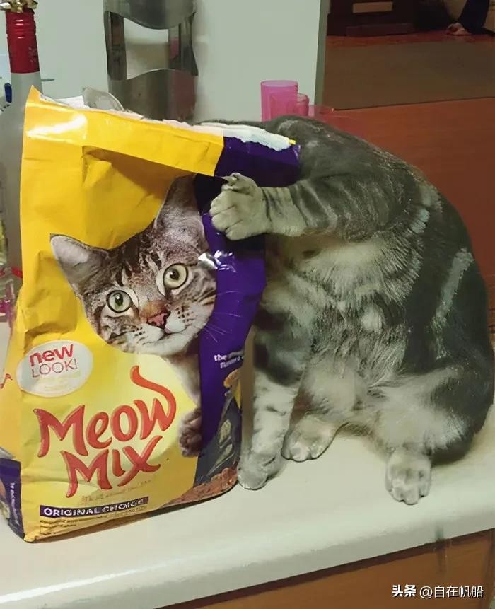 5.包装袋上的猫头与偷吃的猫完美融合
