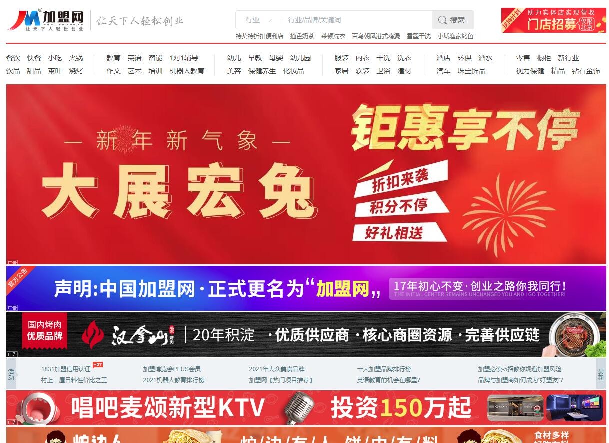 自从互联网进入中国市场以后,国内出现了很多家加盟门户网站,为中小连锁加盟企业进行招商加盟服务。这些加盟网站平台通过为品牌加盟方提供招加盟商服务,同时也为广大创业者提供加盟项目服务。经过互联网热潮的进退现在还有哪些招商加盟网站呢,现在这里列出部分加盟网站,仅供参考。
