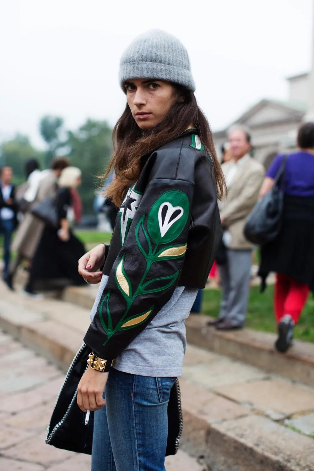 选择针织帽的时候如果想要清爽且收缩的视觉感,建议大家还是选择黑色深灰色,这样在视觉上也会有一点“缩头”的效果,而切记针织帽的形状不要软踏踏的从头顶掉下来,最好挺括一些,这样有型又修饰头型。