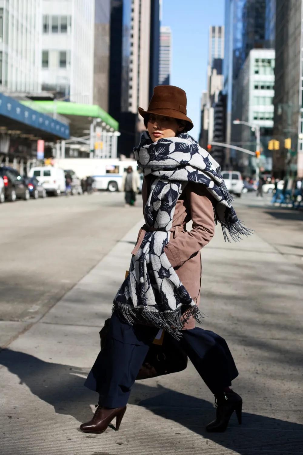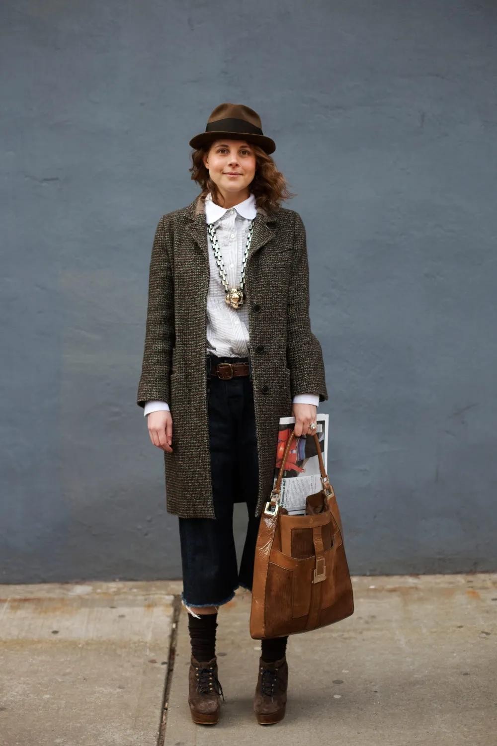最符合我们标准的就是这样的宽檐小礼帽。整体的轮廓比较接近度假风的大檐帽,但是由于材质和版型,让它在秋冬也有比较强的仪式感,带着一定圆润度的帽顶,有着名媛的精致感,很像出席假日聚会活动的礼帽,冬天佩戴不仅显得脸小,还能遮挡阳光,减少日晒。