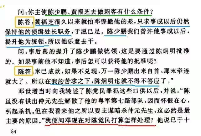 陈答:黄福芝很久以来就怕邓铿撤他的差,只求事成以后仍然保持他的侦缉处长职务,于愿已足。陈少鹏我们曾许他事成以后,提升他为统领,所以他乐意去干。
