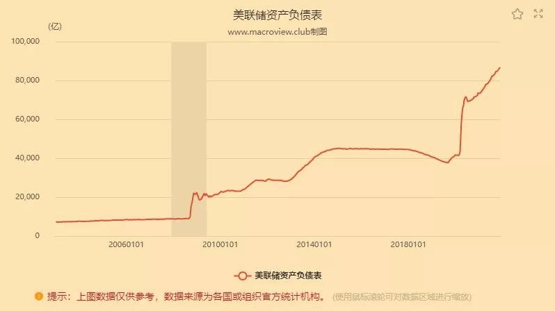 同样,美国的“钱庄”就是美联储,我们看美联储的资产和负债,数目一定也是对等的。