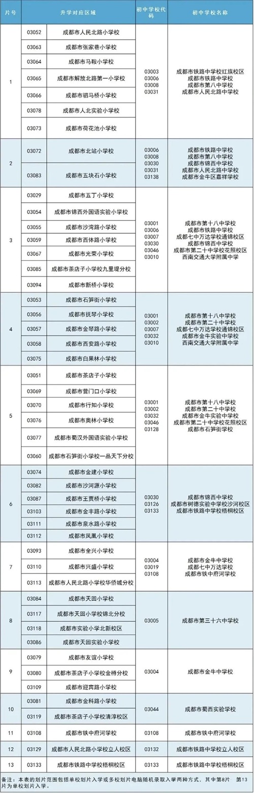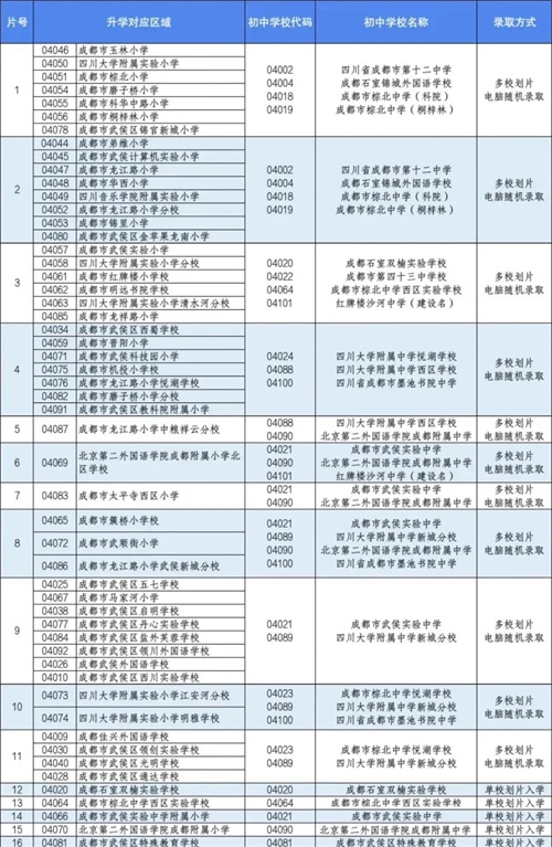 2024年成都青羊区小学毕业生初中入学划片范围一览表