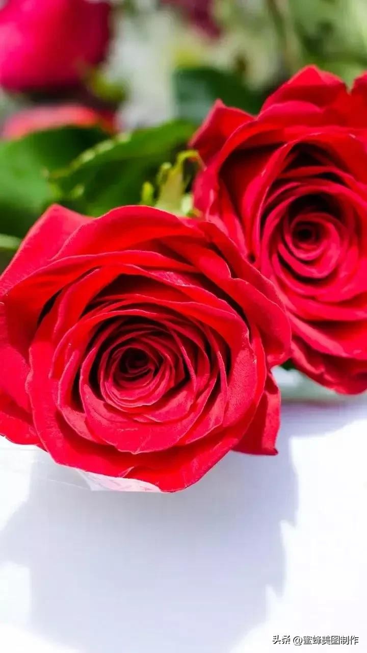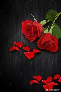 两朵火红的玫瑰娇艳欲滴,它像一团燃烧的火焰,给象征热烈的爱情,美好的愿望。