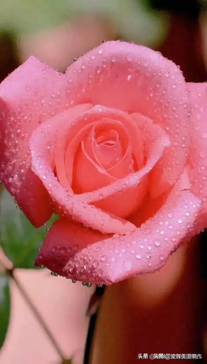 雨后的玫瑰花,花瓣上面缀满了晶莹璀璨的水珠,更加娇艳妩媚,令人喜爱。