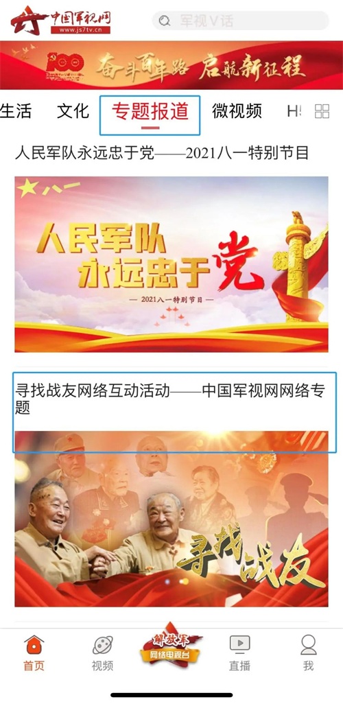 中国军视网特搭建寻找战友平台,