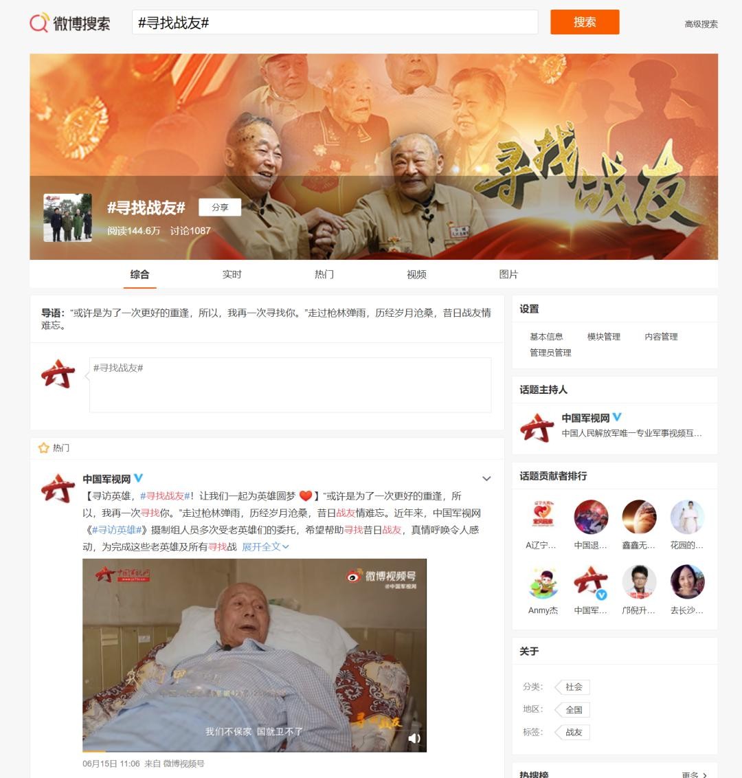 3. 微博——通过微博话题 #寻找战友#参与活动,并@中国军视网;