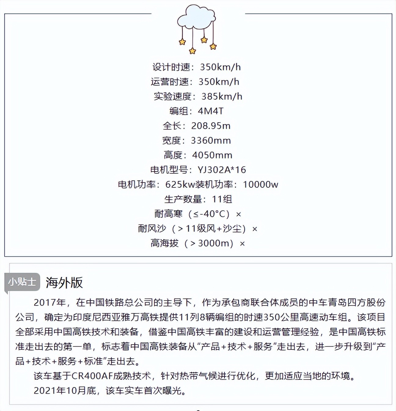 CR400AF(样车)技术参数
