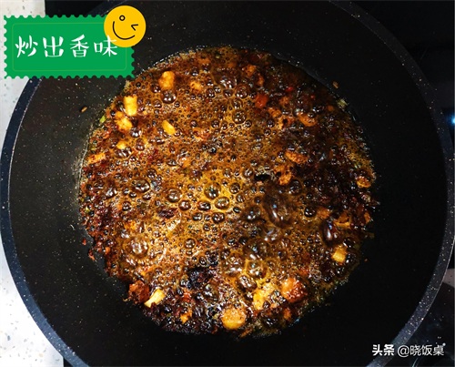 4、等豆瓣酱和火锅底料炒好后,在锅中倒入牛奶和适量的清水并熬成麻辣烫的锅底。