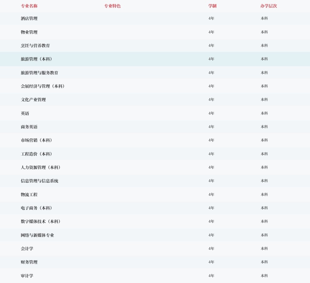 学校坚持社会主义办学方向,以立德树人为根本任务,面向文旅产业培养中高级应用型管理和技术人才。经过多年的建设,学校已发展成为特色鲜明、国内一流、国际知名的酒店管理类应用型大学。近三年,学校教学成果丰硕,本科教学质量工程与教学改革工程建设成效显著。