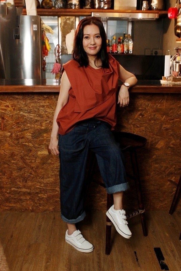 这次李丽珍身穿一款红上衣搭配牛仔裤,在白皙皮肤衬托下,这样经典的撞色实际上还是非常容易穿出时尚感的。但是就服装款式来说这套造型实在不怎么给力,宽松上衣看起来皱皱巴巴很没型,加上本身太宽松造型一点也不显身材。上面宽松也就罢了,裤子还搭配了宽松阔腿牛仔裤,挽起裤脚不高不矮更是不显身材了。要知道李丽珍其实有165cm呢,并不算矮,这样一搭配硬是凹出一米三的视觉效果了,踩双帆布鞋虽然减龄却不修饰身材呀!