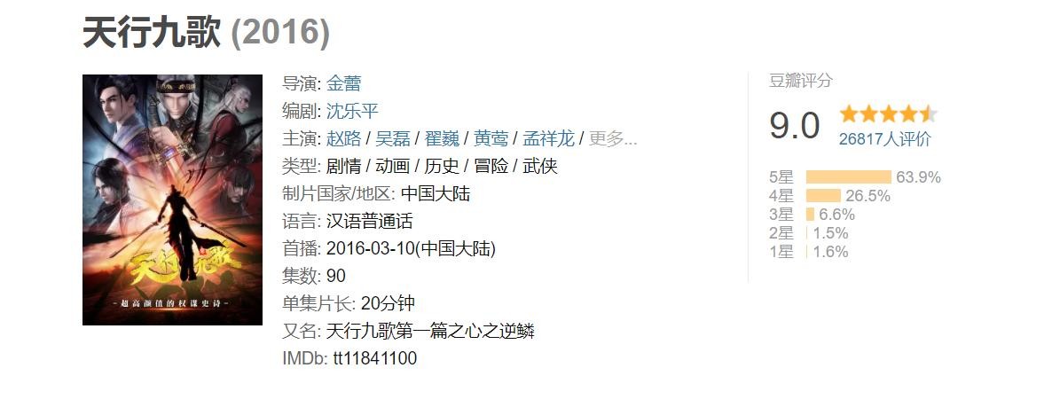 top3《秦时明月之夜尽天明》(豆瓣评分:9.2)