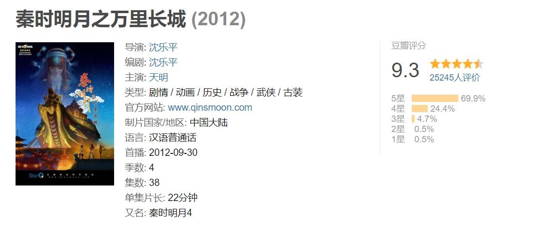 top5《秦时明月之万里长城》(豆瓣评分:9.3)