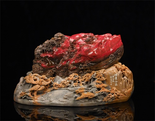 昌化鸡血石雕作品题材广泛、构思巧妙,精湛的技艺与鲜艳的鸡血颜色融会结合,独具特色。