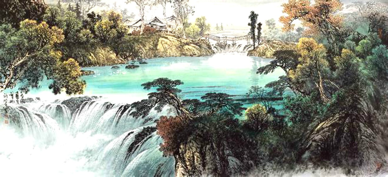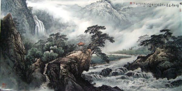 中国山水画主要分为两大类,即水墨山水和彩墨山水(青绿山水,青绿山水又分为大青绿、小青绿以及金碧山水等)。