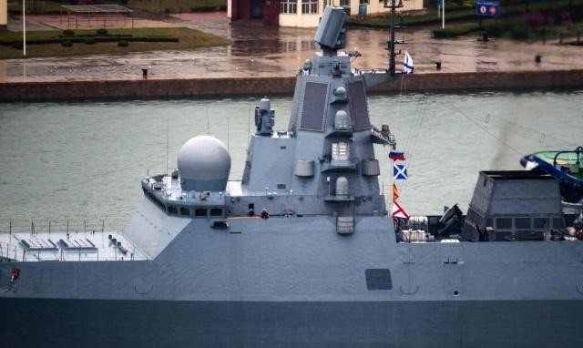 这艘军舰的特点之一在于它配备了多功能相控阵雷达,采用C波段操作,最多能同时追踪400个空中目标与50个水面目标。因此,它被媒体称为“俄式宙斯盾军舰”。当然,由于受限于天线尺寸和俄罗斯电子工业的水平,它的性能相对于西方和我国的大型舰载相控阵雷达而言略显逊色。不过,在舰桥顶部,它装备了34K1雷达,具备超地平线侦测能力,这也是俄罗斯军舰的一项看家本领。