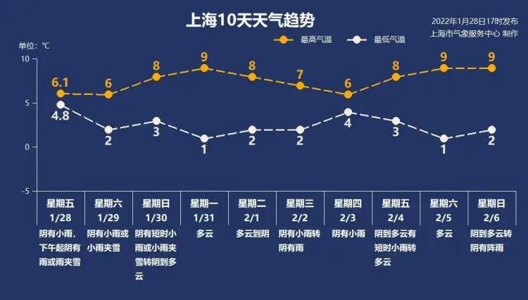 大年三十和初一上海以多云为主,但早晚气温依旧低迷,最低气温接近冰点,白天最高气温止步8-9℃。
