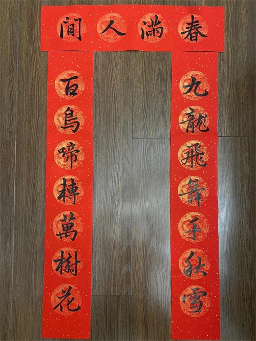 其次,横批的字数都是比较少的,一般是三个字到四个字,横批的作用就是对内容进行一个总结、升华或者是补充,使对联的主题能更加的明确和突出。(比如,上下联分别是描述了春天的景色和人们的喜悦心情,横批我们来一个“春满人间”就会更进一步的强化了春天带来的美好还有氛围感)