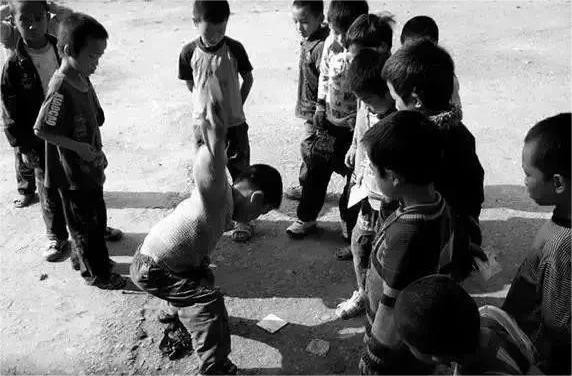 射弹弓的小孩儿,当年小男生是人人一手弹弓,比谁射的准!看这张照片有没有看到童年的影子,右下角还有一个总愿意跟“大孩子”玩的小孩,现在小孩也快当爷爷奶奶了罢。