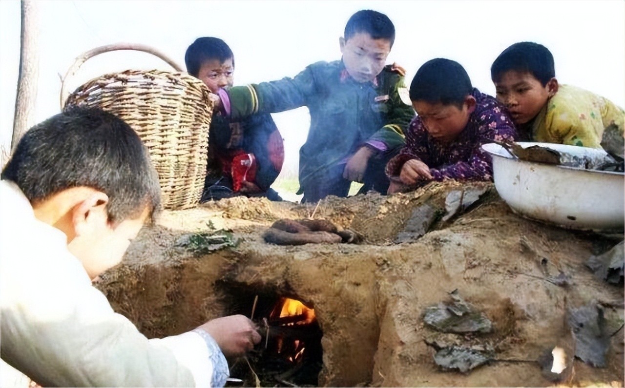 在山上挖了一个烧火得洞,然后小伙伴们每个人从家里拿红薯或者花生、玉米来在一起烤,很考验手法,不然很容易变“焦炭”。
