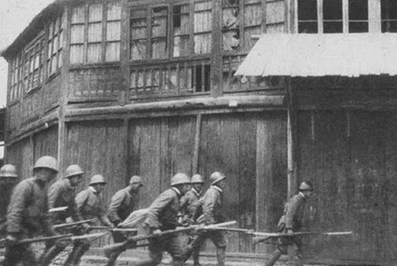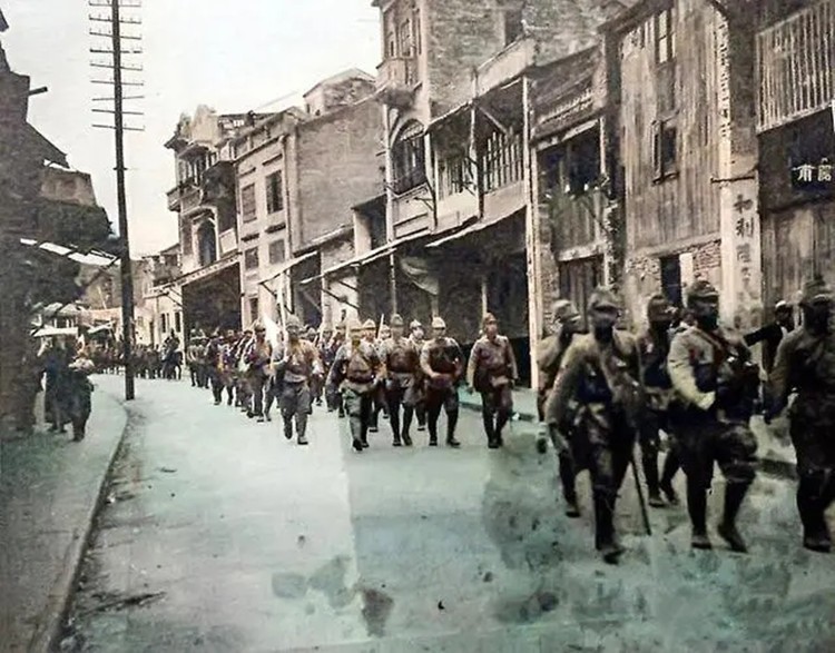 日方集结大规模队伍向南昌行进,中国军队奋力抵抗,依然不敌武器精良的日本军队。