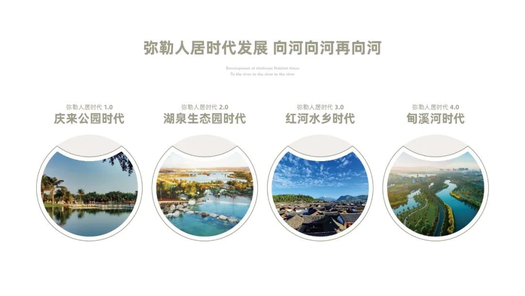 人居从1.0老城时代,弥勒首座城市人工湖公园庆来公园。到2.0湖泉时代,弥勒首座自然湖公园。再到3.0红河水 乡时代,弥勒首个江南水乡建筑形态。以后红河未来城将开启4.0甸溪河时代,弥勒首席亲水华宅。