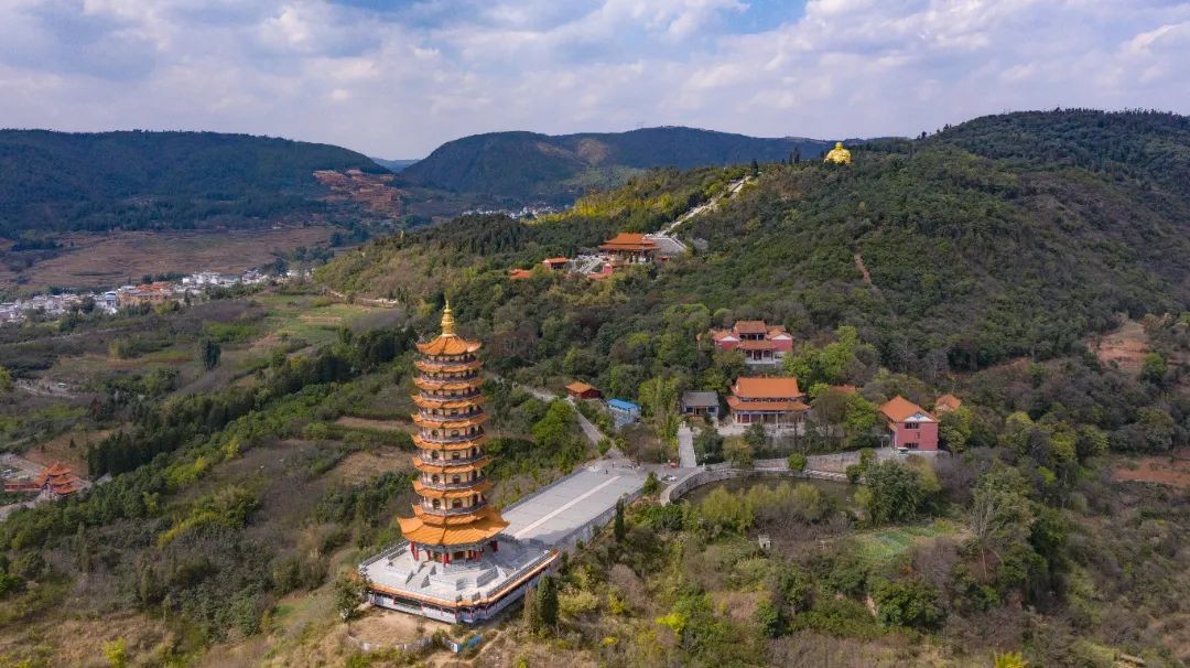 在云南省弥勒市的锦屏山顶,有一尊现今世界上最大的弥勒坐佛,其造型壮观夺目。整尊弥勒佛由水泥钢筋铸成,外层镀24K金,在阳光下金光闪闪。