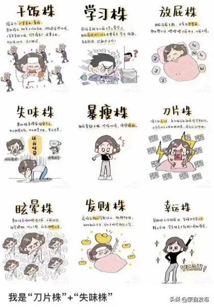 在社交平台“小红书”上,网友绘制的刀片株、炫饭株、学习株等。网络截图