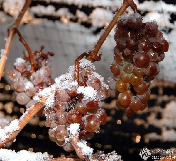 冰酒,是使用冰葡萄酿制的葡萄酒,标识为“Icewine”。冰葡萄的采收必须在-7℃到-8℃之间,通常是凌晨时分,这时葡萄藤上也挂满了厚厚的霜层。冰酒的生产地域要求比较严苛,一般出自德国、加拿大这些气候凉爽的地区。国内张裕在辽宁,莫高在甘肃有产。